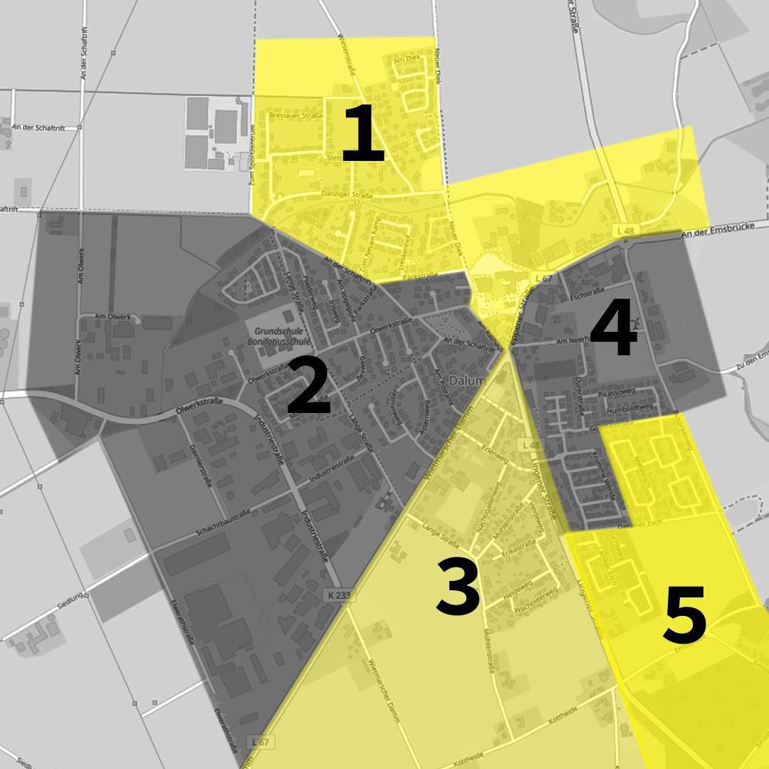| 4 | Dorf Ost | Niklas Schneider | 0173 - 6460613 | zwischen Meppener Straße - Lingener Straße - Dalumer Esch |